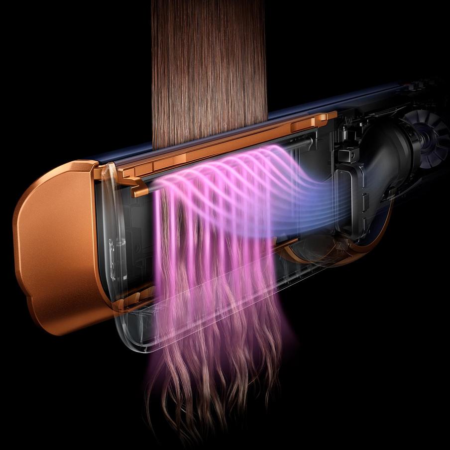 Dyson Airstrait одновременно сушит и выпрямляет волосы. Разработан для создания естественной прямой укладки для различных типов волос. Без горячих пластин. Без тепловых повреждений ваших волос. Делайте укладку на влажных и сухих волосах при помощи одного прибора. Никакого теплового повреждения Новейшая технология ухода за волосами использует поток воздуха высокого давления для выпрямления волос по мере их высыхания. Воздух точно нагревается и равномерно распределяется по локонам во время укладки – нет необходимости в сильном нагреве. Поток воздуха Направлен вниз под углом 45° для создания натяжения, необходимого для выравнивания волос для создания гладкой укладки на концах – с меньшим повреждением и ломкостью. Термисторы из стеклянных шариков Расположенные в рычагах прибора, регулируют температуру воздушного потока до 16 раз в секунду, чтобы предотвратить чрезмерное нагревание и сохранить естественный блеск волос. Двигатель Dyson Hyperdymium Крыльчатка с 13 лопастями вращается со скоростью 106 000 оборотов в минуту, пропуская через прибор 11,9 литра воздуха в секунду. При этом создается давление воздуха 3,6 кПа, достаточное для выпрямления волос по мере их высыхания. Укладка на мокрых волосах Выпрямляйте и сушите волосы одновременно. Три предустановленные температуры – 80 °С, 110 °С и 140 °С - позволяют с помощью одного прибора превратить ваши волосы из влажных в готовые к укладке. Освежить после высыхания Освежите свою укладку после высыхания. Укладывайте при температуре 120 °С, 140 °С или используйте дополнительный режим усиления для достижения максимального блеска. Интуитивно понятный поток воздуха Поток воздуха, когда вам это нужно. Ваш прибор распознает, когда волосы находятся между пластинами и автоматически переключается на низкий поток воздуха, когда их там нет – для более тихой и эффективной укладки. ЖК-экран Цветной дисплей высокой четкости отображает параметры воздушного потока и температуры для удобства использования при укладке. Функция фиксации Сдвиньте кнопку, чтобы зафиксировать пластины вашего прибора. Используйте при сомкнутых пластинах чтобы аккуратно высушить волосы и создать объем у корней. Автоматическая пауза После трех секунд бездействия ваш аппарат автоматически перейдет в спящий режим для экономии энергии. Просто подвигайте ваш прибор чтобы возобновить подачу воздуха.